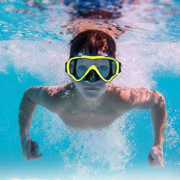 Large champ de vision : les verres larges offrent une vision périphérique étendue pour une meilleure perception de l'eau et une confiance accrue dans l'eau.